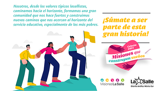 La campaña de Siembra Sonrisas en el Mundo “Misiones que construyen sueños”, organizada por el Distrito Antillas México Sur, tiene el objetivo de reunir recursos económicos para apoyar proyectos educativos y necesidades emergentes de las obras Lasallistas en diferentes países del mundo.