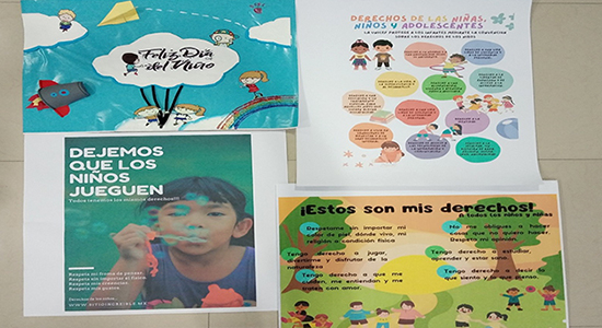 Además, los jóvenes universitarios participantes diseñaron carteles hechos a mano en donde plasmaron los Derechos Humanos de niños, niñas y adolescentes para la promoción de estos mismos que fueron colocados en las aulas y espacios comunes de las escuelas. También, se hizo la entrega de 500 bolsas de dulces, pelotas y libros para colorear.