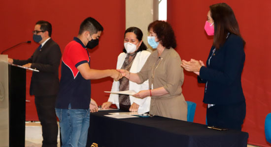 En la ceremonia de premiación también estuvieron presentes la Dra. María Alicia Zavala Berbena, Directora de Investigación y la Mtra. Martha Elena Bermúdez Funes, Directora General de Preparatorias.
