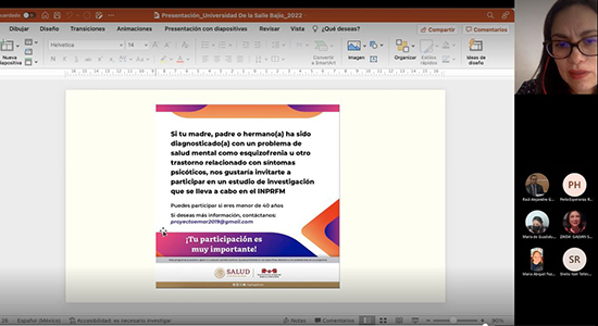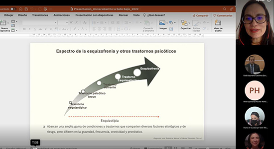 Estudiantes y docentes en la licenciatura en Psicología de la Universidad De La Salle Bajío, Campus Salamanca, decidieron celebrarlo con la conferencia: “Detección y caracterización de estados mentales de alto riesgo para la psicosis”, impartida por la Dra. María de Lourdes Nieto García, investigadora en Ciencias Médicas, y quien participa en la Dirección de investigaciones epidemiológicas y psicosociales en el Instituto Nacional de Psiquiatría Ramón de la Fuente Muñiz.