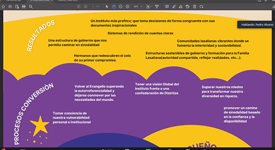Previamente a las mesas de trabajo, el Hno. Pedro Álvarez Arenas, Visitador del Distrito Antillas México – Sur, compartió con la Comunidad la Conferencia Magistral: “46° Capítulo General del Instituto de los Hermanos de las Escuelas Cristianas”, en donde narró los caminos de transformación para la construcción de vidas, los cuales son: Disponibilidad radical a Dios; Conversión Ecológica Integral; Vocaciones Lasalianas: Caminando Juntos.