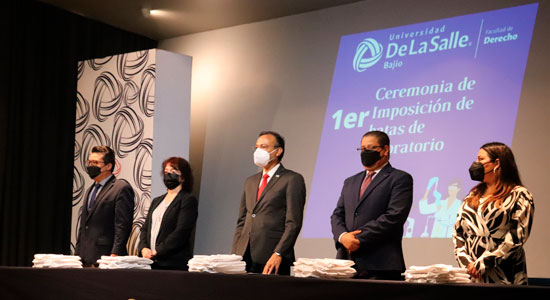 Estudiantes del Programa de Criminología y Criminalística de la Facultad de Derecho de la Universidad De La Salle Bajío vivieron el evento de la Imposición de Bata, en las instalaciones del Aula Magna del Campus Campestre.