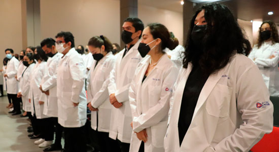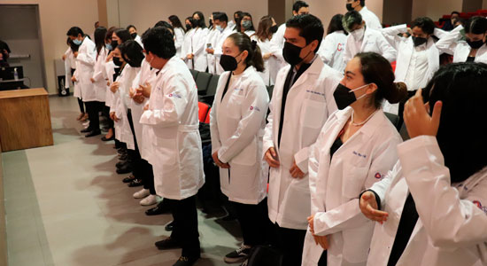 Poco más de 40 estudiantes recibieron de manos de las Autoridades Académicas sus batas, las cuales son símbolo de su compromiso con la Comunidad Universitaria y un recordatorio de sus valores en el ejercicio futuro de su profesión.