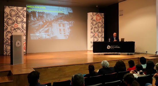 Carlos Scolari comentó que le parece más rico el ecosistema actual de los medios, aunque más complejo y un nuevo desafío para los profesionales de la Comunicación y docentes del área pues es caótico e impredecible.