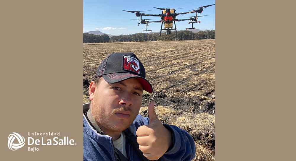 Dentro del sector agrícola, el drone puede ser una excelente herramienta de trabajo como fumigador o aspersor, esto fue lo que explicó Miguel Ángel Corona Cortes estudiante de séptimo semestre en Agronomía de la Universidad De La Salle Bajío.