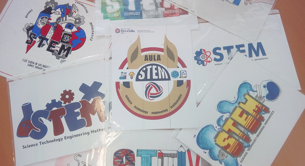 En el logotipo ganador, Ángela integró la palabra STEM acompañado por la presencia de Felino, mascota Universitaria De La Salle y los colores institucionales.