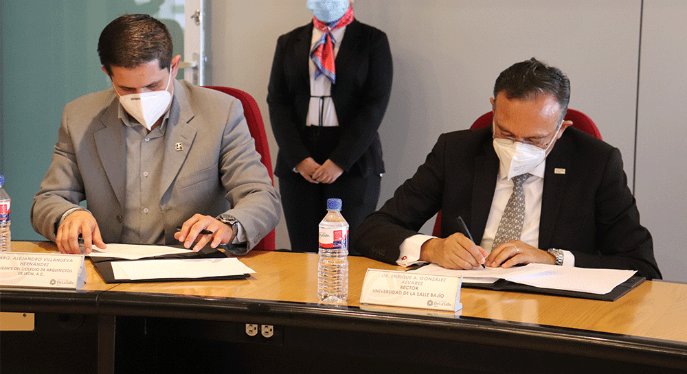 La Universidad De La Salle Bajío y el Colegio de Arquitectos de León formalizaron su alianza con la Firma de Convenio Colaborativo en las instalaciones del edificio de Rectoría del Campus Campestre.