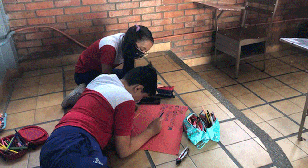 También, elaboraron frases que les permitieron recordar el compromiso personal y social de una sana convivencia que fomente la paz.