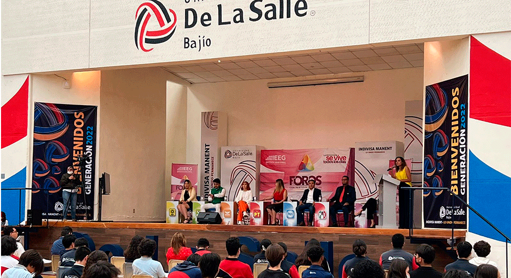 Más de 200 estudiantes de la Universidad De La Salle Bajío Campus Salamanca participaron en el Foro: “Fortalezas y desafíos de las juventudes en los partidos políticos”, organizado por el Instituto Electoral del Estado de Guanajuato (IEEG).