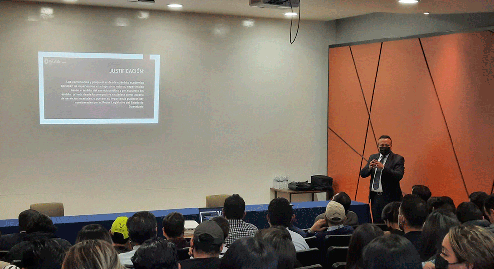 Estudiantes de Maestría en Derecho Notarial y Registral de la Facultad de Derecho de la Universidad De La Salle Bajío realizaron la presentación de sus trabajos académicos sobre la Reforma a la Ley del Notariado para el estado de Guanajuato.