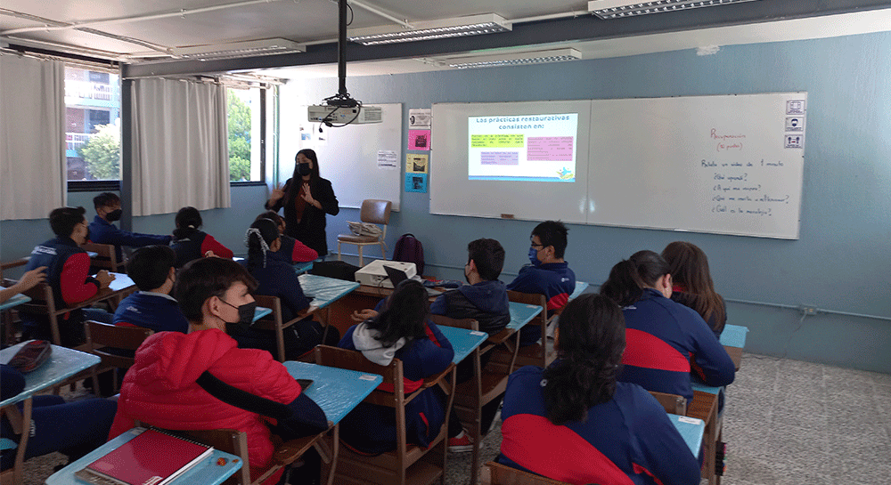 Un total de 110 estudiantes participaron en dicha iniciativa en la que, al inicio se dividieron en pequeños equipos para que propusieran las prácticas restaurativas de las siguientes situaciones: apodos denigrantes a los compañeros, ciber bullying con los compañeros de clases, uso de vapeadores en las instalaciones de la escuela, entre otros.