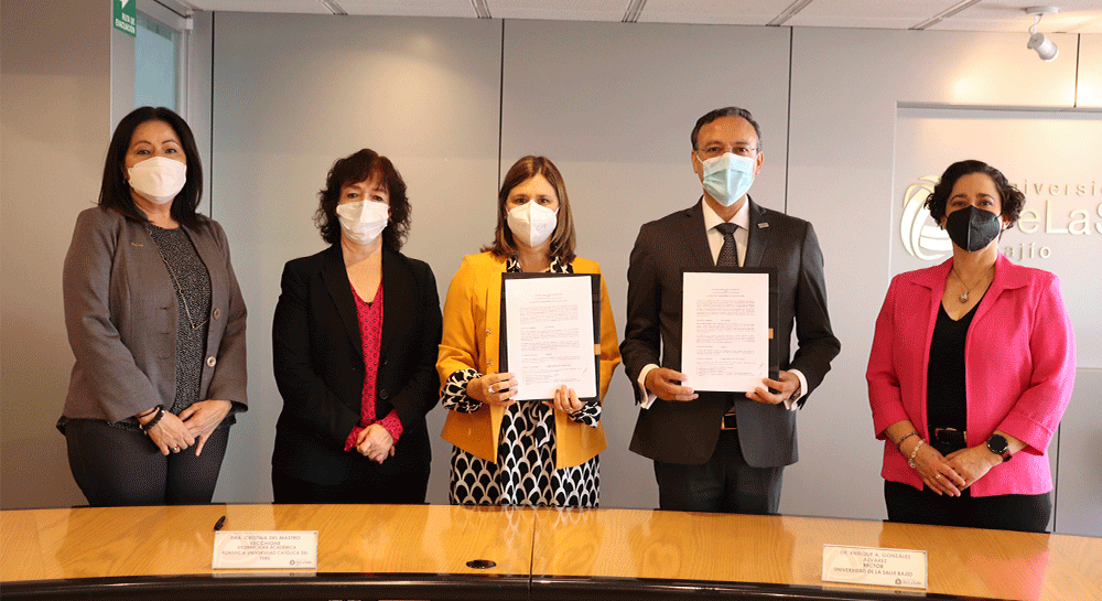 Con la finalidad de crear lazos colaborativos entre la Universidad De La Salle Bajío y la Pontificia Universidad Católica del Perú se llevó a cabo la Firma de Convenio en las instalaciones del Campus Campestre de esta Casa de Estudios.