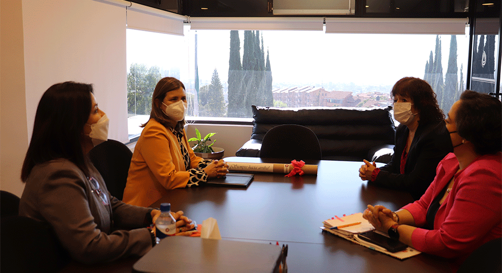 Luego de este acto protocolario, la Dra. Cristina se reunió con la Vicerrectora Académica, en conjunto con la Mtra. Patricia Villasana y la Lic. María Del Carmen Guerra, para concretar algunas actividades iniciales que enmarcan esta colaboración.
