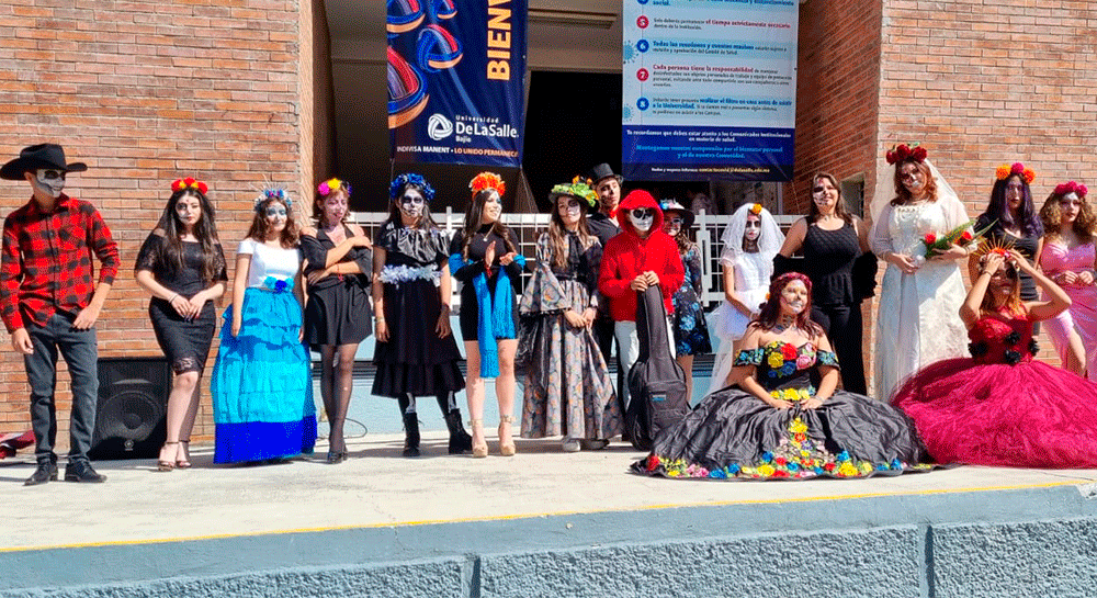 De manera adicional, esta actividad se hizo con la participación de los jóvenes que conforman el Movimiento Juvenil Lasallista (MOJULA), quienes atendieron el desarrollo de los tapetes, alfeñiques y la tradicional pasarela de Catrinas que se realizó durante el horario de receso.