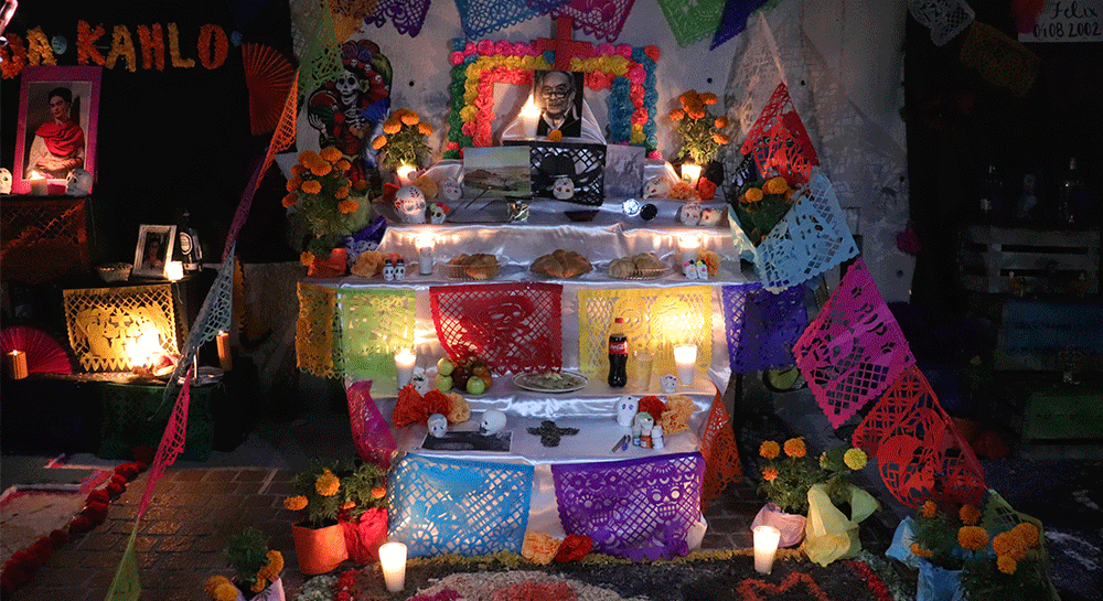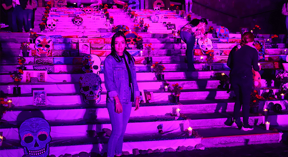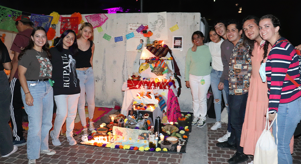 A lo largo de las escalinatas de Rectoría se realizó una ofrenda monumental organizada por el Consejo General de Estudiantes, en el que colocaron fotografías de los integrantes de esta Comunidad Lasallista quienes se adelantaron en el camino, de igual manera, estuvo compuesta por la exposición de arte: Los Habitantes del Mictlán.