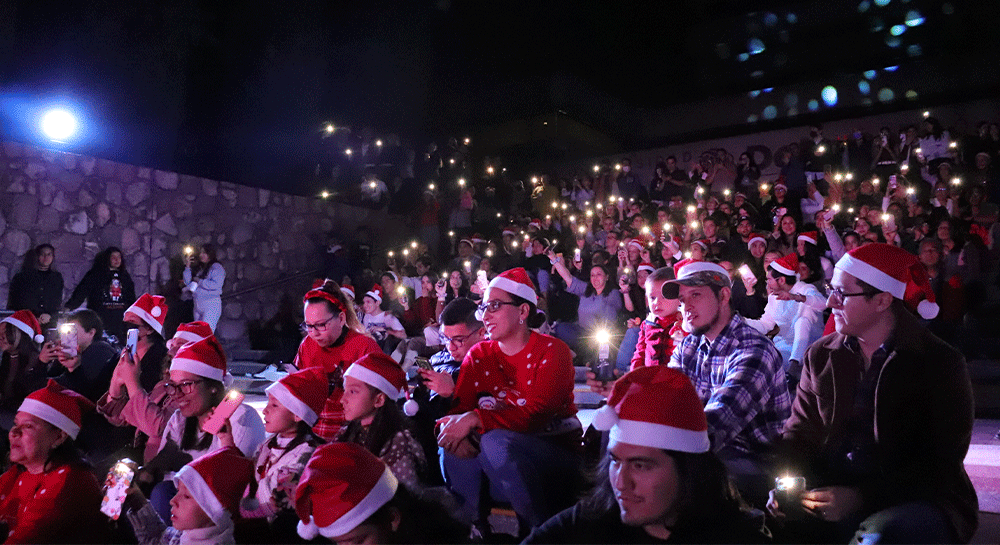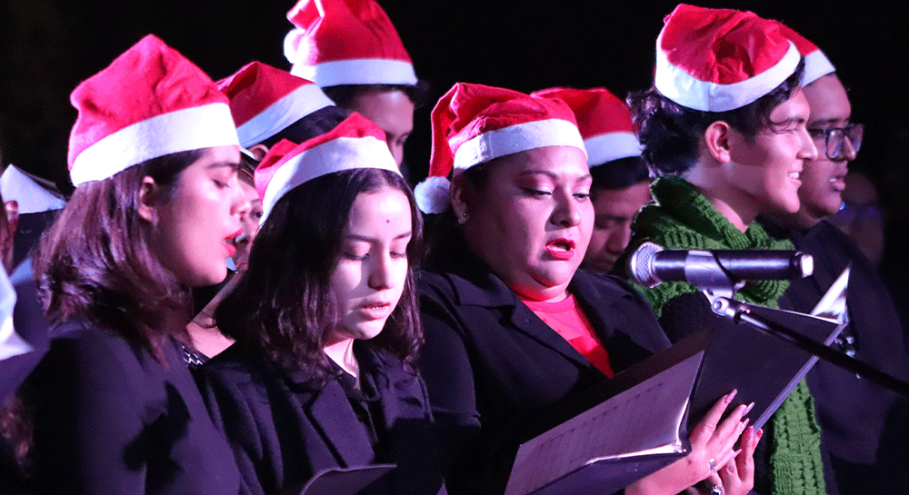 Con este evento, realizado en las escalinatas de la Torre de Rectoría, se dio inicio a las actividades decembrinas, en el que, el Coro Polifónico Felinos De La Salle conformado por 35 estudiantes y dirigido por el Mtro. Moisés Mata Piña, realizó una impecable presentación de villancicos.
