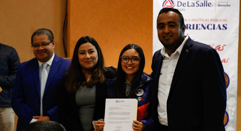 El presídium estuvo conformado por: Dr. Fernando Márquez Rivas, Director de la Facultad de Derecho; Mtra. Zara Beatriz Vargas Montelongo, Jefa de programa de Gobernanza y Políticas Públicas; Lic. Nut. Ana Lizeth Nárez Guillén, Regidora Propietaria del H. Ayuntamiento de Purépero Michoacán 2021 – 2024; Mtro. Ismael Zúñiga Ramírez, Coordinador de participación juvenil y empoderamiento (JuventudES GTO); Lic. Janet Melanie Murillo Chávez, Diputada Local del Partido Acción Nacional Distrito XIII; L.C. Ana Fernanda Ortiz Gómez, Directora de Comunicación Social, RRPP y Eventos Especiales.