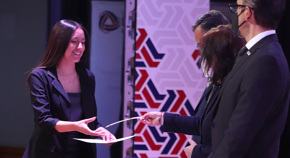 A nombre de los egresados de esta generación, Christopher Emmanuel Durán Castillo, de la licenciatura en Actuaria, dirigió un mensaje de despedida, en el que enfatizó el arduo trabajo que fue culminar su preparación académica teniendo como contexto la pandemia, asimismo, felicitó a sus compañeros por el logro obtenido.