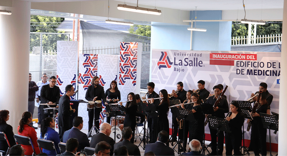Autoridades académicas lasallistas, funcionarios estatales, municipales y miembros de la Comunidad Universitaria de La Salle Bajío se reunieron en el Campus Campestre para realizar y presenciar la inauguración del Edificio de la Escuela de Medicina del Bajío, programa académico que inició actividades escolares en agosto del año pasado.