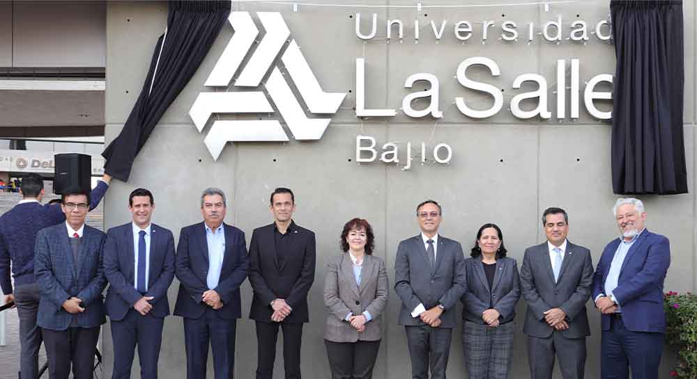 En un acto simbólico, pero de gran significado, el Dr. Enrique Alejandro González Álvarez, rector de la Universidad La Salle Bajío, realizó junto a la Mtra. Ma. Socorro Durán González, vicerrectora académica, la develación oficial de su nueva identidad institucional en el Campus Campestre.