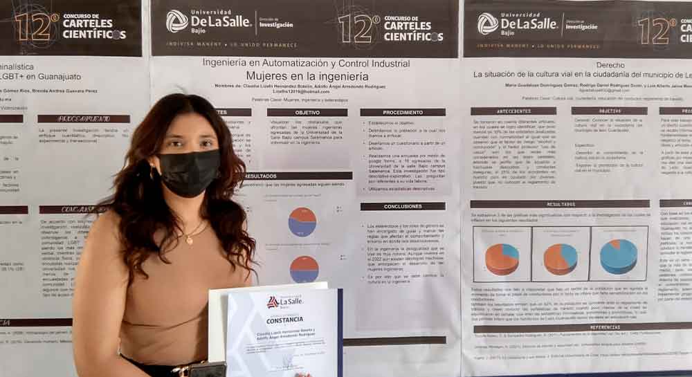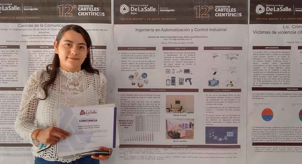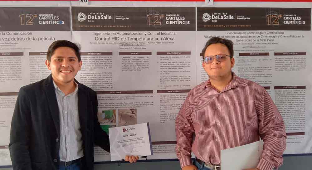 Estudiantes de octavo semestre de la licenciatura en Ingeniería en Automatización y Control Industrial de la Universidad La Salle Bajío Campus Salamanca resultaron ganadores de los primeros tres lugares en el 12vo Concurso de Carteles Científicos, en la categoría de Ingenierías, organizado por la Dirección de Investigación.