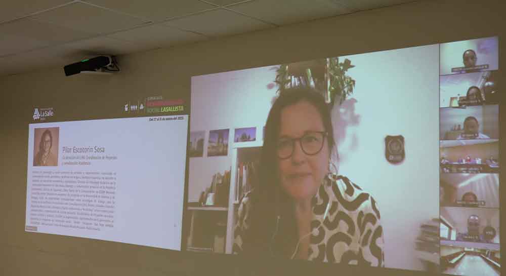 Como parte de la Jornada de Responsabilidad Social Lasallista de la Universidad La Salle Bajío, se vivió la Conferencia Magistral: Radiografía en 4D para Construir Universidades Responsables y Prosocialmente Inteligentes, impartida por la Pisc. Dra. Pilar Scotorin Sosa, a través de Microsoft Teams.