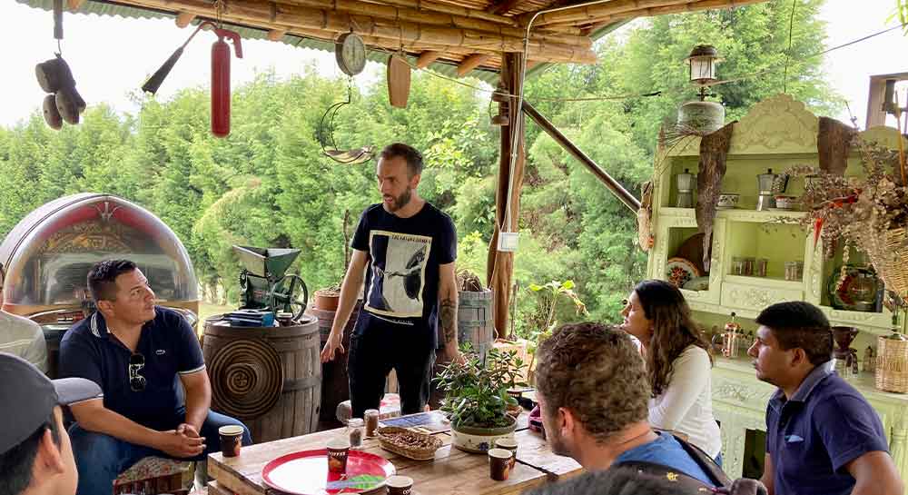 Asimismo, en la Zona Cafetalera en Caldas, Antioquia, los estudiantes tuvieron un recorrido en una finca cafetalera, atendidos por Sebastián Posadas, quien, junto con el Profesor Fredy Arenas, dieron una charla sobre el café y su paralelismo con la historia de Colombia, hablaron sobre técnicas de preparación de café y cata de la bebida.