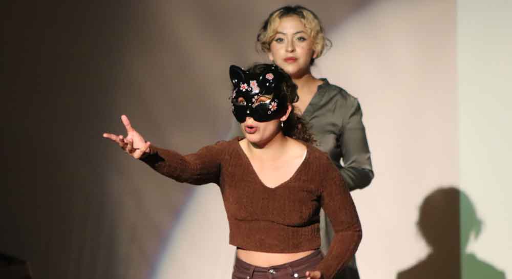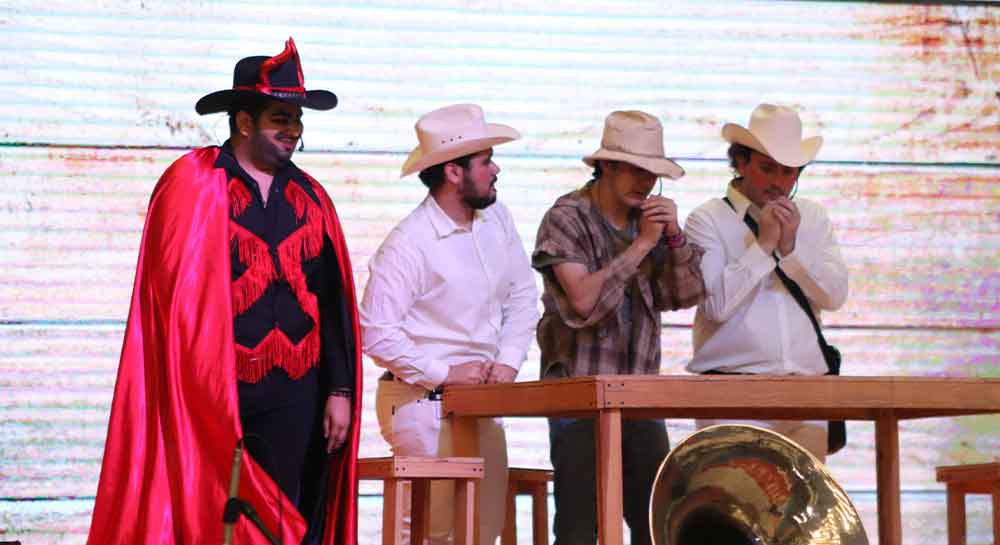 “A la Diestra de Dios Padre”, presentación de teatro contemporáneo realizada en el escenario del Universum Nostrum, Campus Campestre, de la Universidad La Salle Bajío, a cargo de La Salle Noroeste fue la muestra artística con la que se arrancó el tercer día de actividades del FLAC 2023.