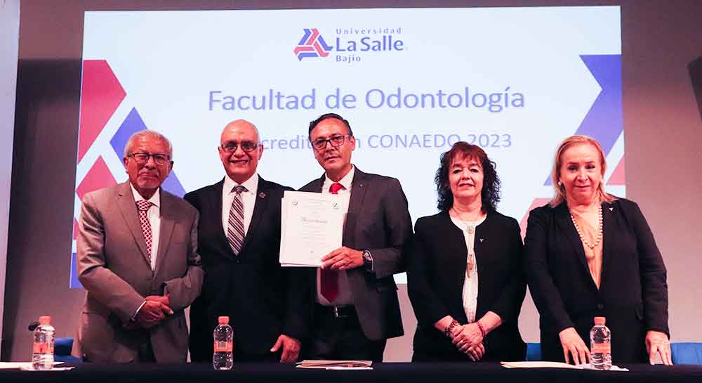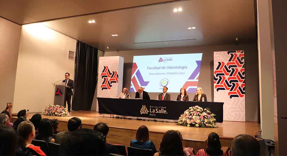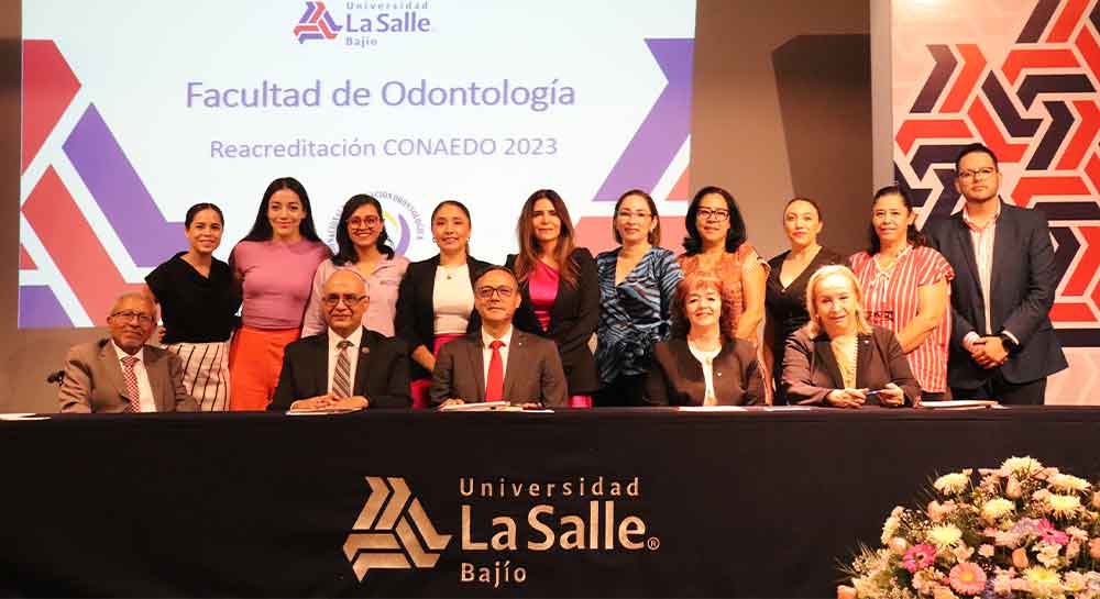 Autoridades Académicas de la Universidad La Salle Bajío y del Consejo Nacional de Educación Odontológica (CONAEDO), se reunieron en el Aula Magna del Campus Campestre para celebrar la entrega oficial de la reacreditación del Programa de Odontología.