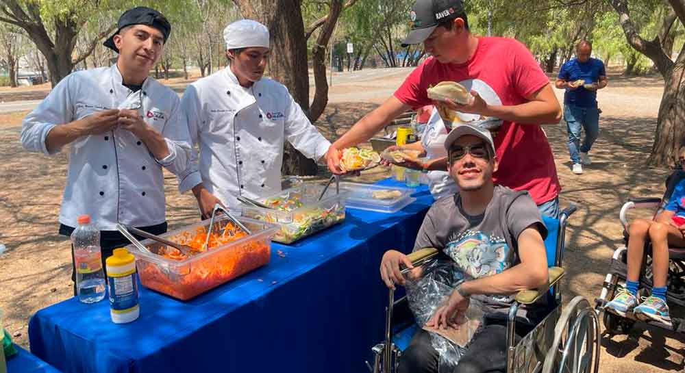 Por otro lado, los estudiantes de la Licenciatura en Gestión y Operación de Servicios Gastronómicos, prepararon y sirvieron los alimentos de la jornada, que constó de una colación, y la comida principal, acompañada de agua fresca y postres.