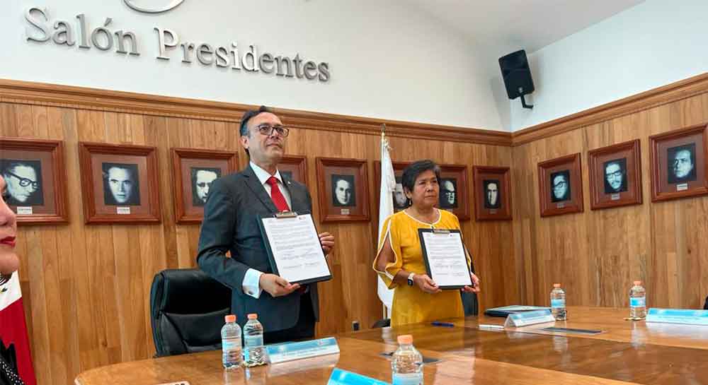Por parte del Poder Judicial la Magistrada María Rosa Medina Rodríguez, Presidenta; el Mtro. Rubén Tognola Zubieta, Director de Vinculación y la Lic. Judith Angélica Pérez Aranda, Jefa de Relaciones Institucionales.