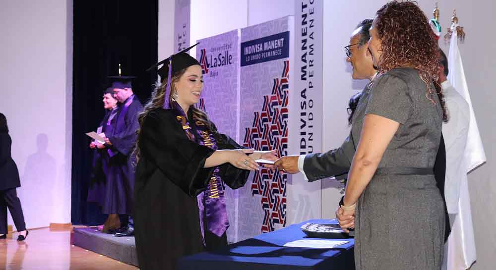 Por su parte la Mtra. María Socorro Durán González dirigió la imposición de la Insignia recordándoles que siempre serán Lasallistas, pues a donde vayan deberán mostrar en alto el nombre de la Institución, así como, fomentar los valores que han adquirido durante el CIRO.