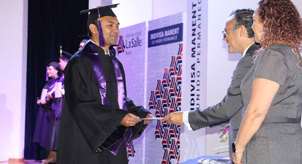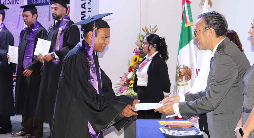En esta ceremonia estuvieron presentes las siguientes autoridades académicas: Hno. Enrique Alejandro González Álvarez, Rector de la Universidad La Salle Bajío, quien porta la Venera, Símbolo Institucional que utiliza en ceremonias solemnes como la de esa tarde; Mtra. María Socorro Durán González, Vicerrectora Académica de esta Casa de Estudios; Mtra. Méredith Moreno Martínez, Directora de Servicios Escolares; Dr. José Luis Castellanos Suárez, Coordinador del Curso Internacional de Revalidación en Odontología.