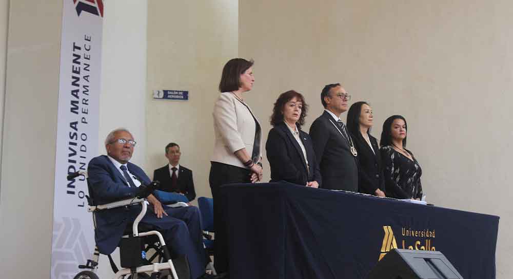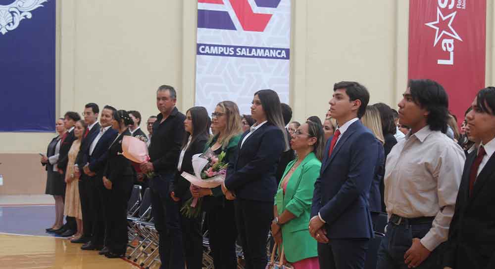 En el Presídium se contó con la presencia del Hno. Enrique Alejandro González Álvarez, Rector de la Universidad La Salle Bajío, quien portó la Venera, Símbolo Institucional que utiliza en ceremonias solemnes como la de esa tarde; Mtra. Ma. Socorro Durán González, Vicerrectora Académica; Hno. Julián Espejel Rentería, Vicerrector de Bienestar Universitario; Ing. Edel María Espino Ledezma, Directora General del Campus Salamanca; Mtra. Martha Elena Bermúdez Funes, Directora General de Preparatorias y Mtra. María Guadalupe Muñoz González, Directora de Preparatoria del Campus Salamanca.
