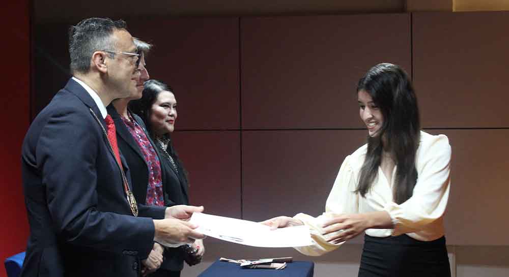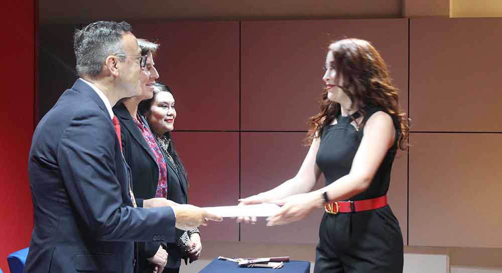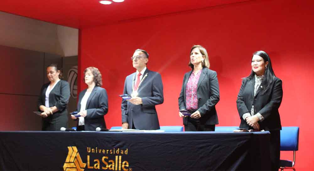 En la mesa del presídium se contó con la presencia del Rector de nuestra Casa de Estudios, el Dr. Enrique Alejandro González Álvarez, quien fungió como Presidente del Jurado y que portaba la Venera, símbolo institucional; como Secretaria del Jurado, la Mtra. María del Socorro Durán González, Vicerrectora Académica. Como vocales, la Ing. Edel María Espino Ledezma, Directora General del Campus Salamanca; Mtra. Meredith Moreno Martínez, Directora de Servicios Escolares y Mtra. Perla Esperanza Rostro Hernández, Directora de la Facultad de Estudios Superiores.