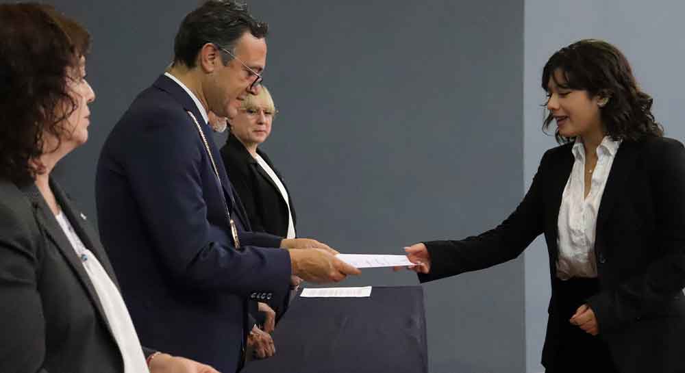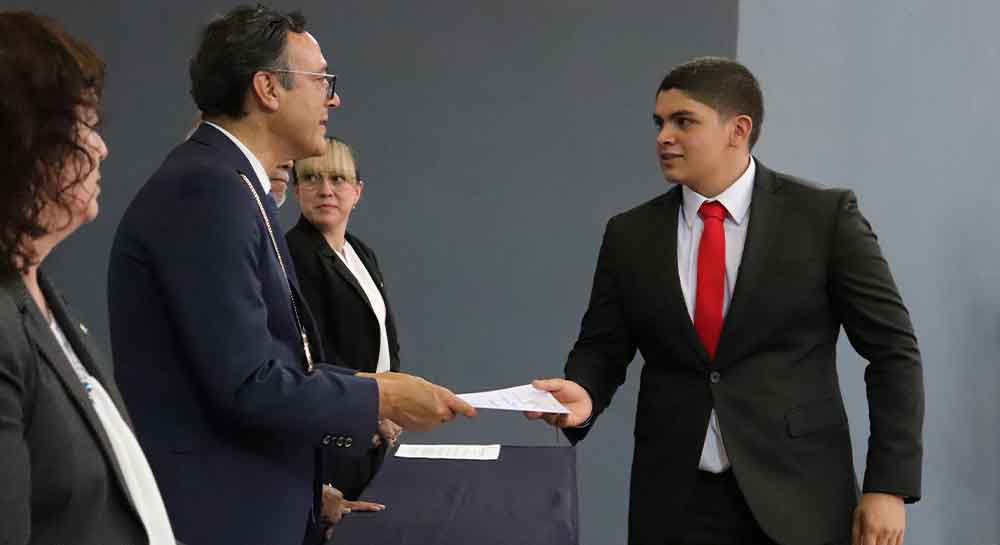 Cada uno de los ahora egresados, pasaron al frente del presídium para recoger su constancia de manos de las Autoridades Académicas, el Hno. Enrique Alejandro González Álvarez, Rector de la Universidad y la Mtra. Ma. Socorro Durán González, Vicerrectora Académica de esta Casa de Estudios, así como las Directoras de cada Campus.