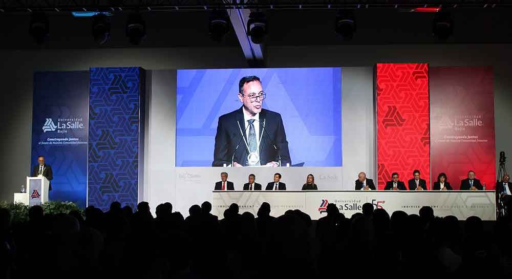 Por su parte el Hno. Pedro Álvarez Arenas, Presidente de la H. Junta de Gobierno y Visitador del Distrito Antillas México Sur, reconoció el esfuerzo, dedicación y dirección que ha dado el Dr. Enrique Alejandro González Álvarez a la Universidad La Salle Bajío durante su gestión como Rector.
