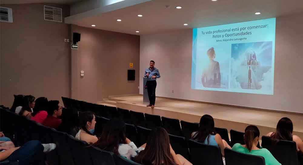 Dentro de las actividades realizadas, se impartió la charla "Tu vida Profesional está por comenzar: Retos y Oportunidades" a cargo del Mtro. Alejandro Ramón Lanzagorta Navarrete, docente de la Maestría en Alta Dirección.