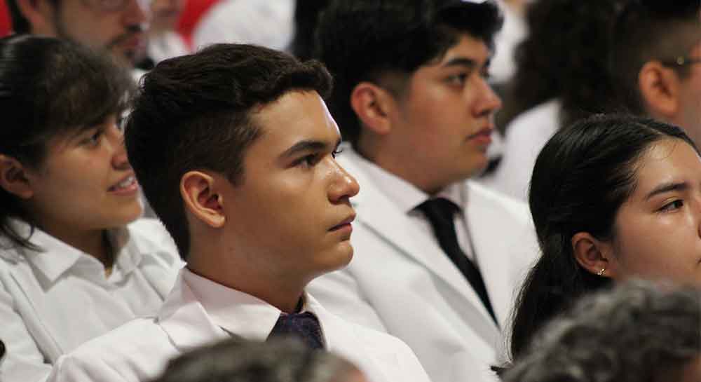 En su mensaje de bienvenida, el Dr. Rodolfo Pérez Carrillo, Director de la Escuela de Medicina expresó: “Hoy su sueño se ha hecho realidad, sabemos que llegar a este día no fue fácil, reconocemos su esfuerzo y compromiso a lo largo del curso pre-médico, ahora su obligación es mantener el sueño de estar aquí, al igual que es mantener ese compromiso y dedicación a lo largo de sus estudios, ese compromiso también es con su familia, sus pacientes y con la sociedad en general”.