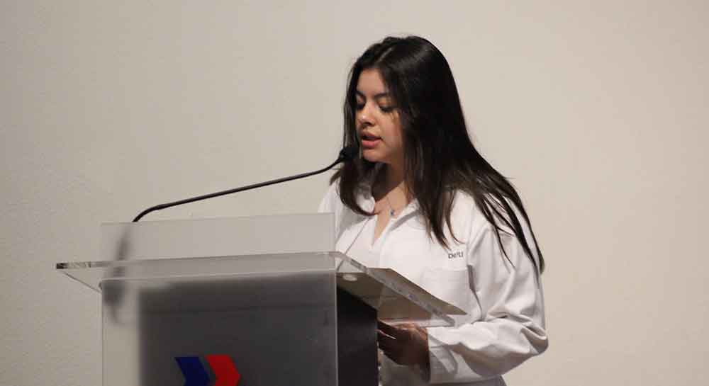 Posteriormente, el estudiante Axel Santana López, a nombre de la generación, realizó el compromiso de honor: “a nombre de mis compañeras y compañeros, agradecemos enormemente la oportunidad que se nos da, esperando mantener vivo en todo momento el espíritu de esta Universidad. Lo Unido Permanece. Indivisa Manent”.