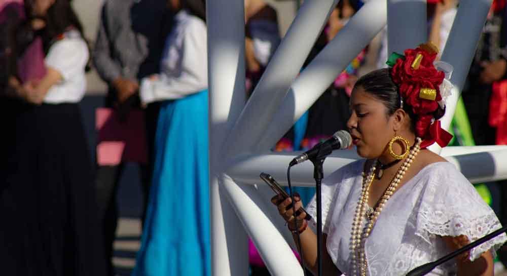 El himno nacional mexicano fue interpretado con gran sentimiento por la voz de la alumna Kapsis Orozco Olvera, mientras que el juramento a la bandera estuvo a cargo de la estudiante Emili Mariana Salomón Márquez.