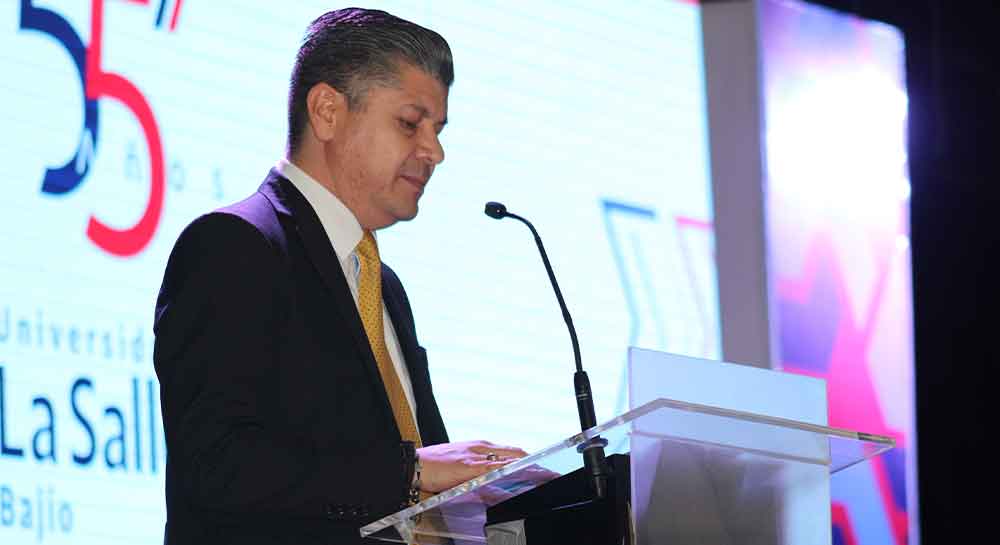 El Mtro. Gabriel Tadeo Camacho, Director de la Facultad de Negocios, expresó su entusiasmo y gratitud en un emotivo discurso: "Sin duda es una emoción muy grande la que me invade el día de hoy, al ser, al igual que ustedes, testigo de la realización de un sueño, una misión y todo un reto que se gestaron hace ya 55 años y que se cumplen hoy, precisamente en ustedes, nuestros estudiantes. ¿Cuál fue ese sueño, esa misión y ese gran reto? El sueño, construir una universidad en donde se forjen las mujeres y los hombres que habrán de provocar los cambios que necesita el país, que habrán de revolucionar las mentes, las formas, los procesos, que habrán de transformar e innovar, mejorar, incidir y decidir responsablemente, por su bien y el de los demás, que con sus acciones lideren siempre el porvenir de su entorno”.