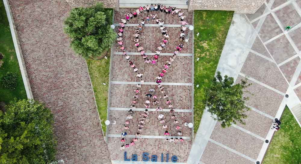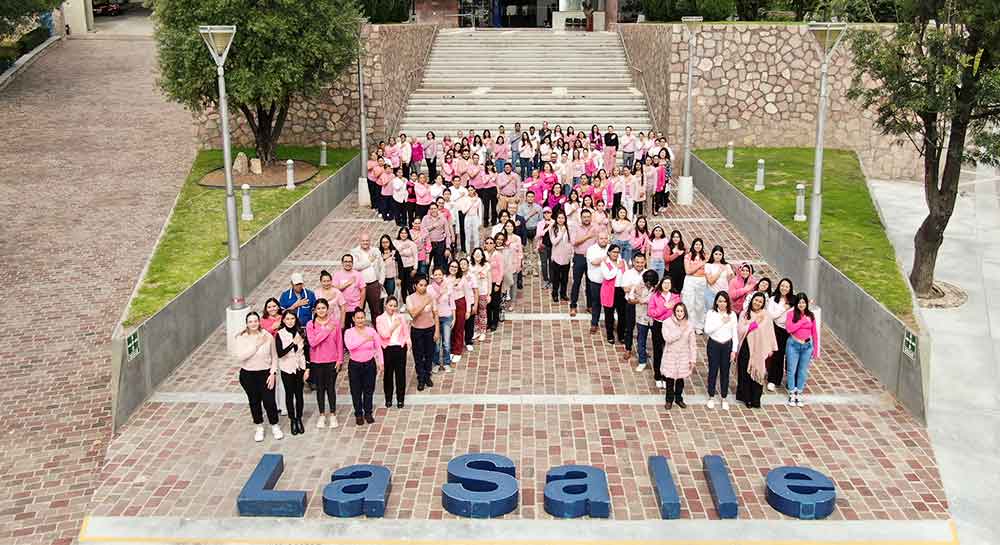 En un emotivo acto de solidaridad y concienciación, la Comunidad de la Universidad La Salle Bajío se reunió en las escalinatas de la Torre de Rectoría para conmemorar el Día Internacional de lucha contra el Cáncer de Mama.