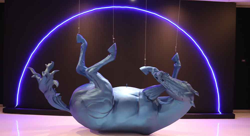 La exposición revela obras que dialogan a través de símbolos conocidos pero reinterpretados, como la figura humana, el canon griego, objetos cotidianos, formas geométricas y colores vivos. Sin embargo, estas piezas van más allá de la mera representación; cada una se convierte en un collage de historias propias, un mundo surrealista que fusiona lo real con lo imaginario, lo posible con lo imposible, sueños y pesadillas.