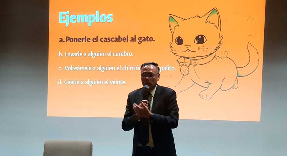 Asimismo, refirió que la Fraseología analiza estas expresiones fijas, formadas por varias palabras, a las que no se le puede quitar ni agregar elementos, que siempre van en el mismo orden y tienen un sentido figurado que no se puede traducir literalmente. “Los dichos, proverbios y pensamientos históricos también entran en el estudio de la fraseología”, expuso.