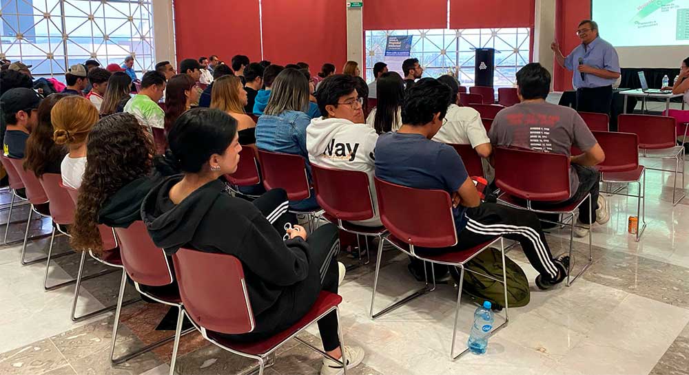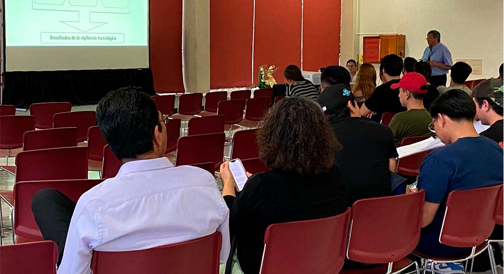 En el taller de “Vigilancia Tecnológica”, el ingeniero Del Valle, quien tiene amplia experiencia en procesos de Desarrollo Tecnológico y Transferencia de Tecnología (con trabajo en entidades como el ahora CONAHCYT, CIATEQ, diversas OTT y empresas privadas), explicó a estudiantes de la Facultad de Ingenierías y Tecnologías cómo es el proceso para captar información sobre ciencia y tecnología, y convertirla en conocimiento a fin de tomar decisiones oportunamente que permitan el crecimiento de empresas o instituciones.