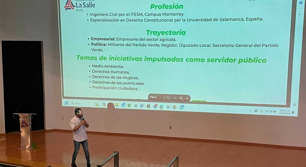 Este miércoles 24 de abril, el candidato a la Presidencia Municipal de León por el Partido Verde Ecologista de México (PVEM), Gerardo Fernández, asistió al Campus Juan Alonso de Torres de la Universidad La Salle Bajío, donde ante más de cien miembros de la Comunidad Estudiantil habló sobre su plan de gobierno.