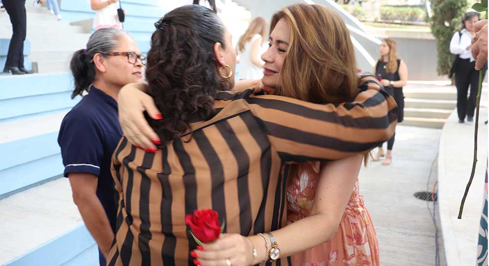 Al término de la ceremonia, el Hermano Julián y la maestra Ma. del Socorro Durán, Vicerrectora Académica, regalaron rosas a las mamás.