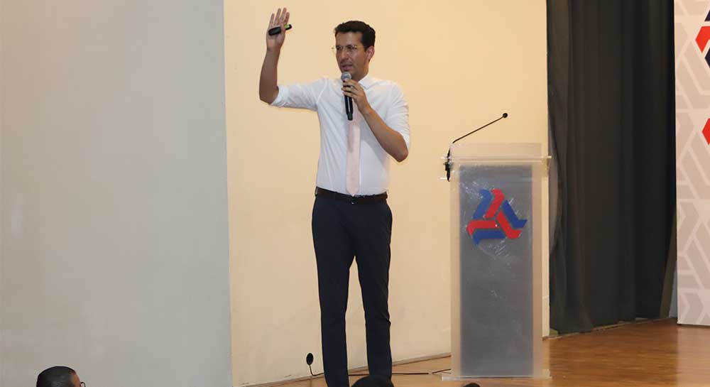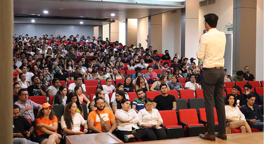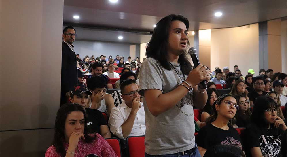 Juan Pablo Delgado Miranda, candidato a la Presidencia Municipal de León por Movimiento Ciudadano, conversó ante un entusiasta auditorio de la Comunidad Lasallista del Campus Campestre sobre sus propuestas, principalmente, en medioambiente, seguridad y transporte.