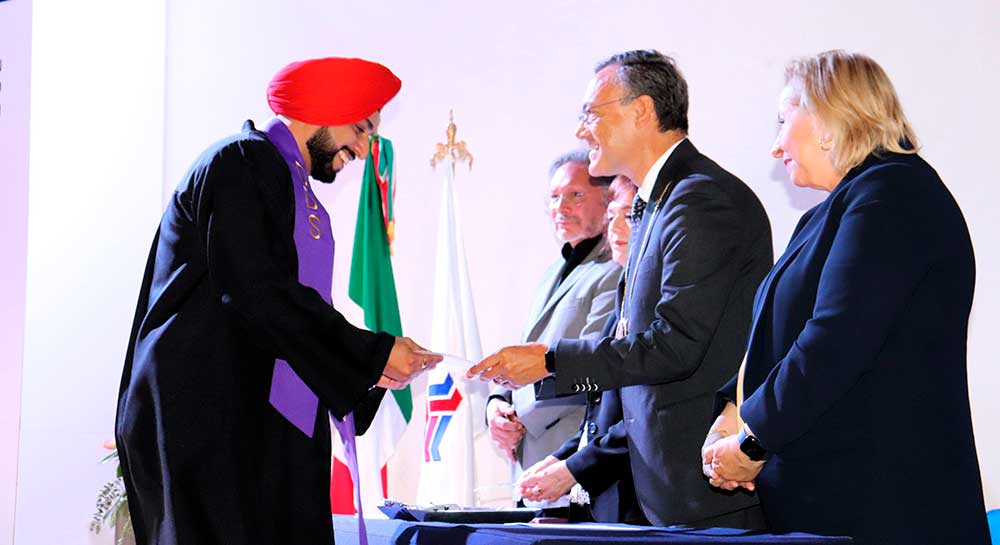 Con sus seres queridos como testigos, las y los 22 graduados recibieron de manos de las autoridades universitarias sus constancias que los acreditan para poder ejercer su profesión en California, Estados Unidos. Uno de ellos, es Juan Carlos Soto Teijeira, quien en representación de sus compañeros y compañeras dio un mensaje.